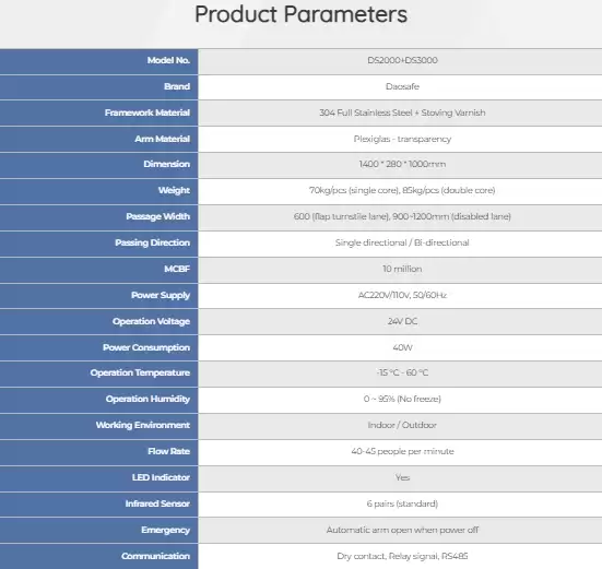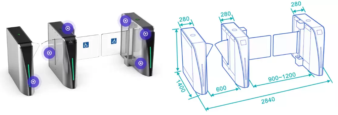 – Cổng xoay SV2000+SV3000 là cổng xoay đặc biệt, bao gồm một làn đường có cánh và một làn xoay. Làn đường có cánh với lưu lượng 40~45 người/phút, đảm bảo tốc độ di chuyển nhanh chóng trong điều kiện giao thông đông đúc. Làn đường xoay được thiết kế dành cho người khuyết tật, người mang hành lý lớn và người có nhu cầu khẩn cấp.Cổng xoay SV2000+SV3000 là cổng xoay đặc biệt, bao gồm một làn đường có cánh và một làn xoay. Làn đường có cánh với lưu lượng 40~45 người/phút, đảm bảo tốc độ di chuyển nhanh chóng trong điều kiện giao thông đông đúc. Làn đường xoay được thiết kế dành cho người khuyết tật, người mang hành lý lớn và người có nhu cầu khẩn cấp.Cổng có tín hiệu rơle tiêu chuẩn, có thể tích hợp với bất kỳ hệ thống và thiết bị kiểm soát ra vào nào của bên thứ ba, chẳng hạn như đầu đọc RFID và vân tay.